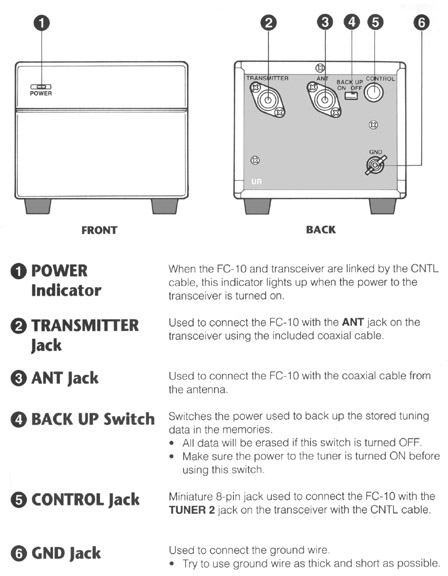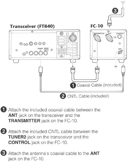 The FC-10 provides a compact, easy-to-install unit that is styled to match the appearance of the FT-840 and will match a wide variety of antennas to within a 1.5:1 SWR on any amateur band frequency in typically less than 30 seconds. You can use the tuner switch on the transceiver for one-touch recall of tuner frequency memories that have already been stored. SWR matching occurs in under one second for memory recall. Transmitter power required for matching can be as little as 10 watts and matching settings are automatically stored in memory for instant recall when the same frequency range is reselected later.