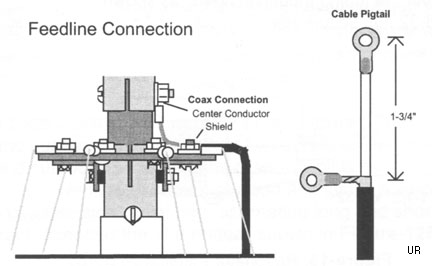 feedline connection and radial wire connection are via supplied solder lugs.