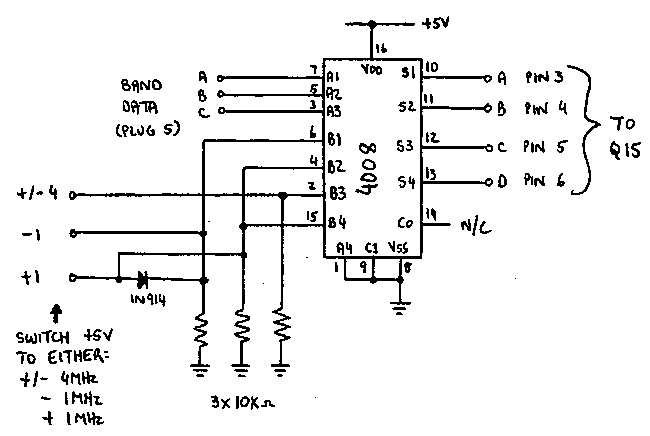 The original band data is fed into the "A" inputs of the 4008, and the offset switch is fed into the "B" inputs of the 4008.