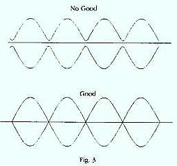 - Adjust the TX VFO/SUB encoder control until the waveforms displayed on the oscilloscope cross as shown in figure 3.