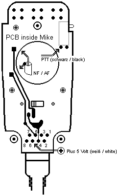 Vorweg, fur Schäden die durch den Umbau verursacht werden ubernehme ich keine Haftung. Bei mir und einigen OM´s funktioniert der HF-Clipper bestens und bringt so an die 10 dB. Der Einbau in das Mikrofongehäuse erfolgt durch Austausch der dynamischen Mikrofonkapsel. Richtet man sich nach der unten stehenden Einbauanweisung kann nichts schief gehen, sorgfältiges löten voraus gesetzt. Das Clippermodul eignet sich auch fur den Einbau in andere Handmikrofone. Ab einer Versorgungsspannung größer 9 Volt ist die Spannungsversorgung uber einen 78L06 Spannungsregler dem Modul zu zufuhren.